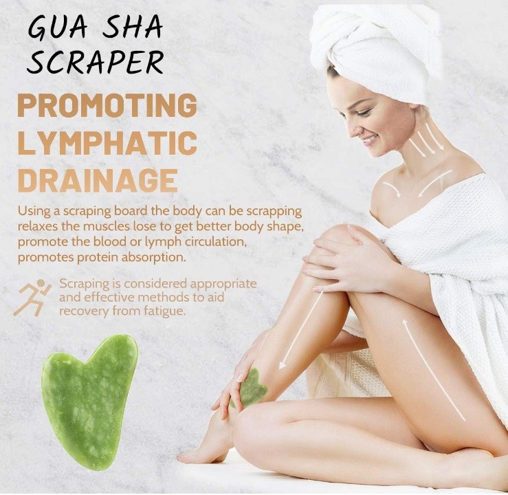 1. يتم الضغط بلطف على حجر اليشم المسطح ذو الجوانب المنحنية على طول وجهك، ويتحرك للأعلى وللخارج.