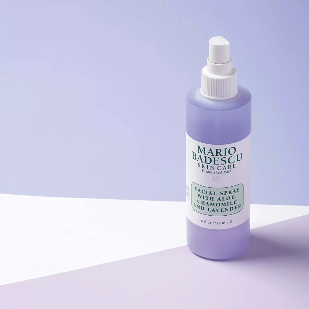 امنحي وجهك دفعة ترطيب مريحة باستخدام بخاخ ماريو بديسكيو الذي يغذي البشرة بمواد نباتية مهدئة وملطفة منها خلاصة الصبار والبابونج ومياه اللافندر