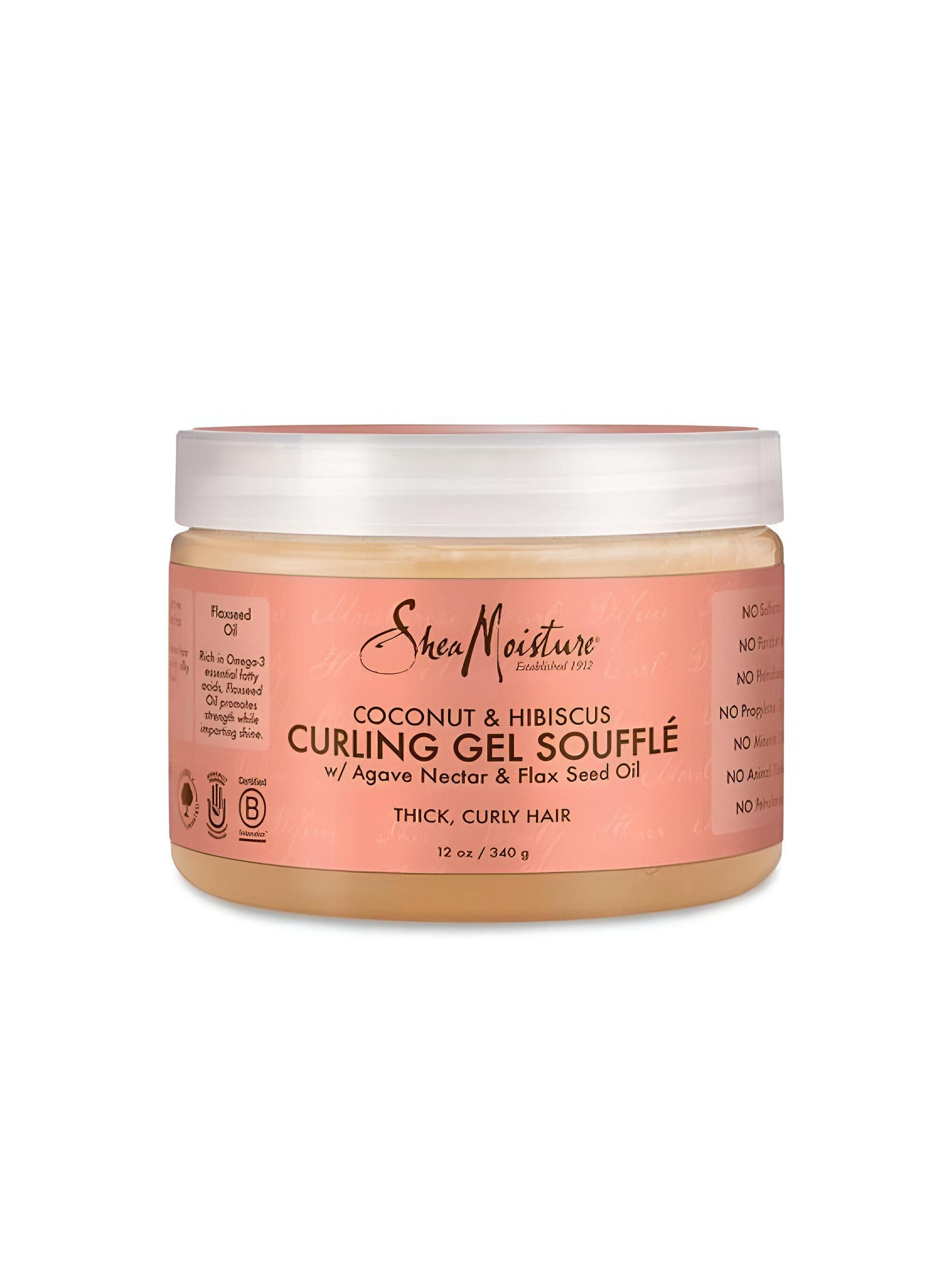 - جل تجعيد الشعر SheaMoisture Coconut & Hibiscus Curling Gel Souffle (340 جرام) يترك تجعيدات الشعر تبدو صحية ولامعة ومرنة.