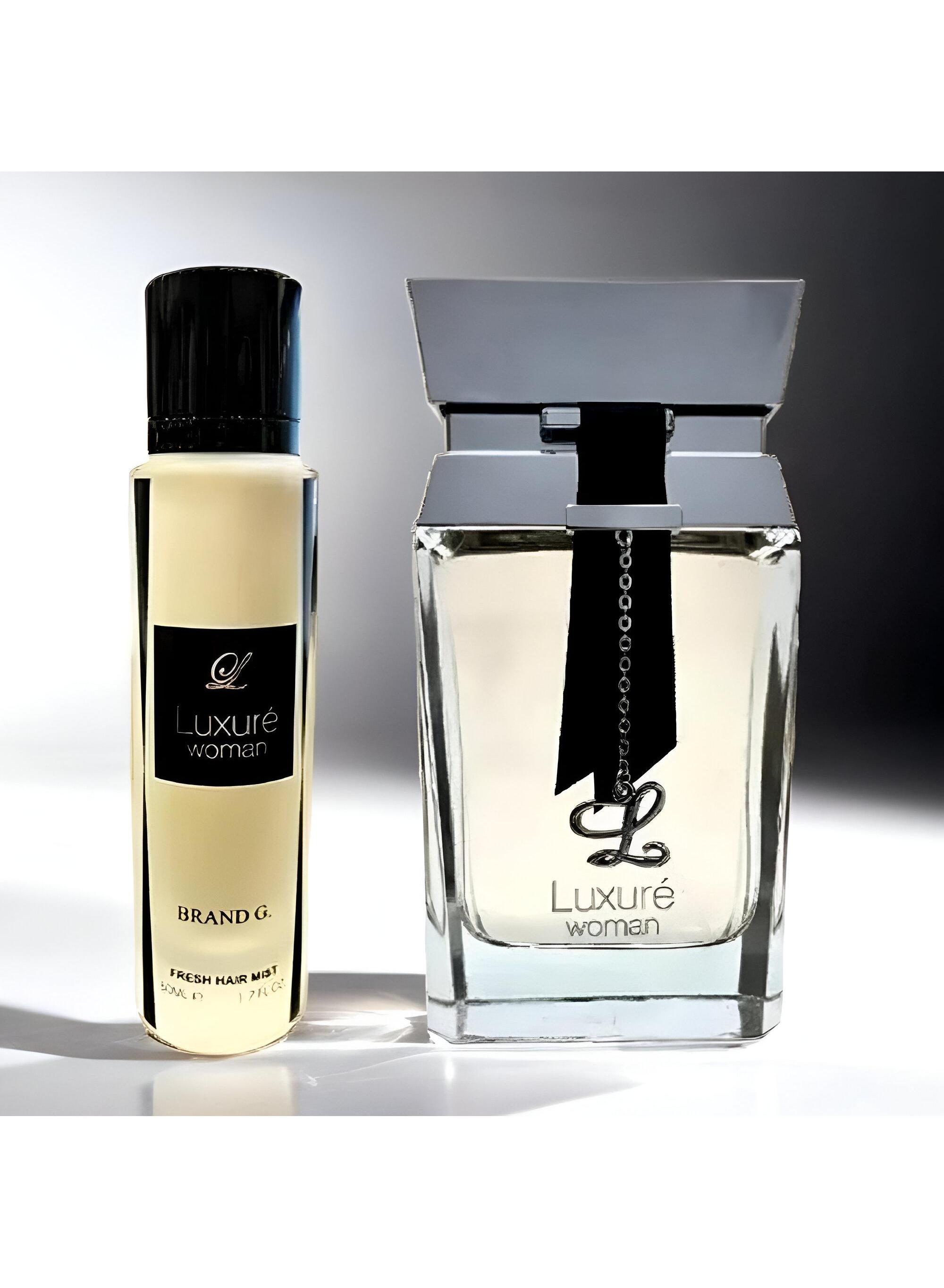 تنغمس في تجربة رائحة لا تنسى مع عطر Luxure Woman. تسوق الآن واستمتع بعطر شعر مجاني 50 مل لتعزيز جاذبيتك. عرض الوقت المحدود! عامل نفسك أو شخص مميز - هذا العطر ليس مجرد رائحة ؛ إنه بيان.