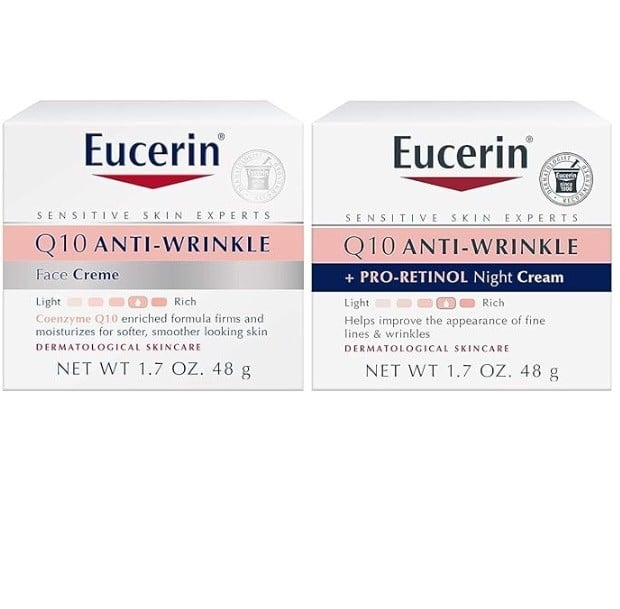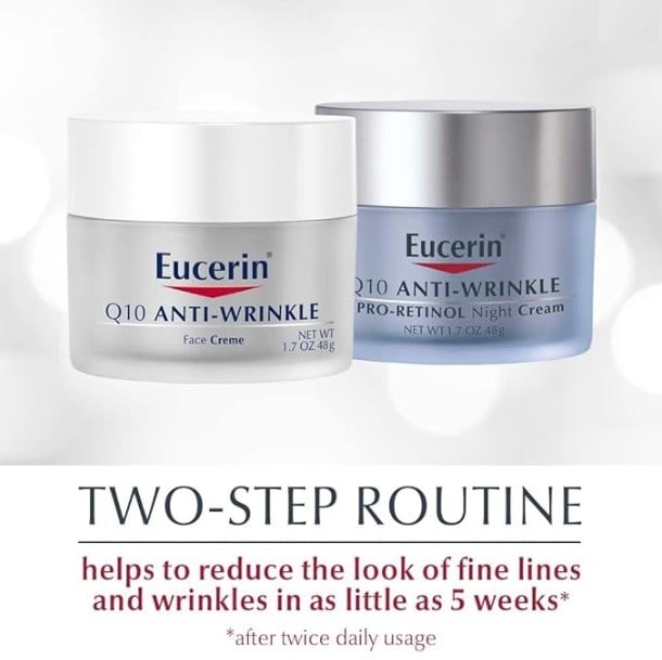كريم Eucerin Q10 المضاد لتجاعيد الوجه هو كريم مرطب مضاد للتجاعيد معد لأجل البشرة الجافة الحساسة. وقد صمم خصيصًا بحيث لا يعمل على تهييج البشرة ولكي يقلل بلطف من مظهر التجاعيد وعلامات التقدم في العمر.
